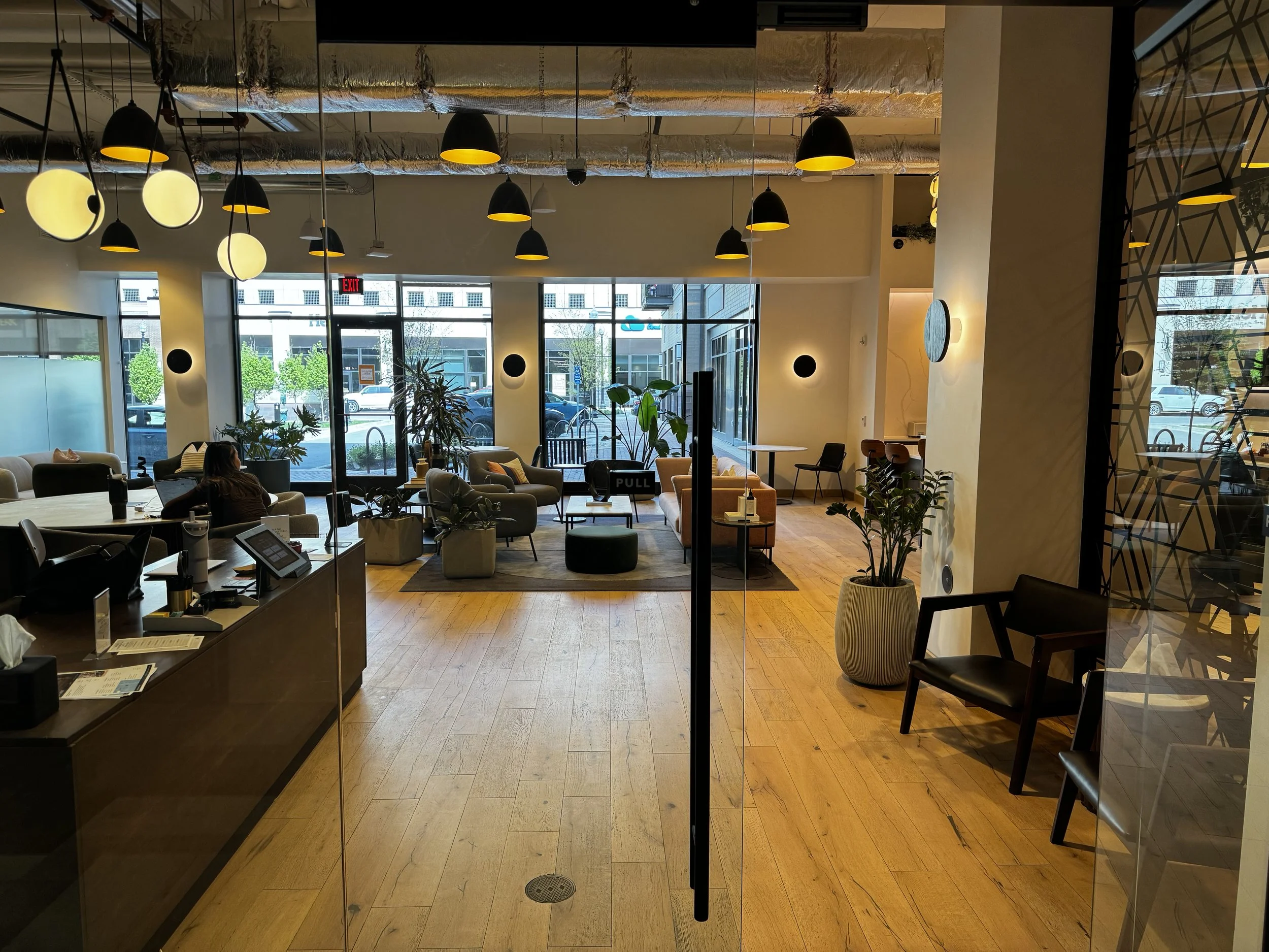 Once you walk into the building, follow the left corridor below the sign that says “Industrious”