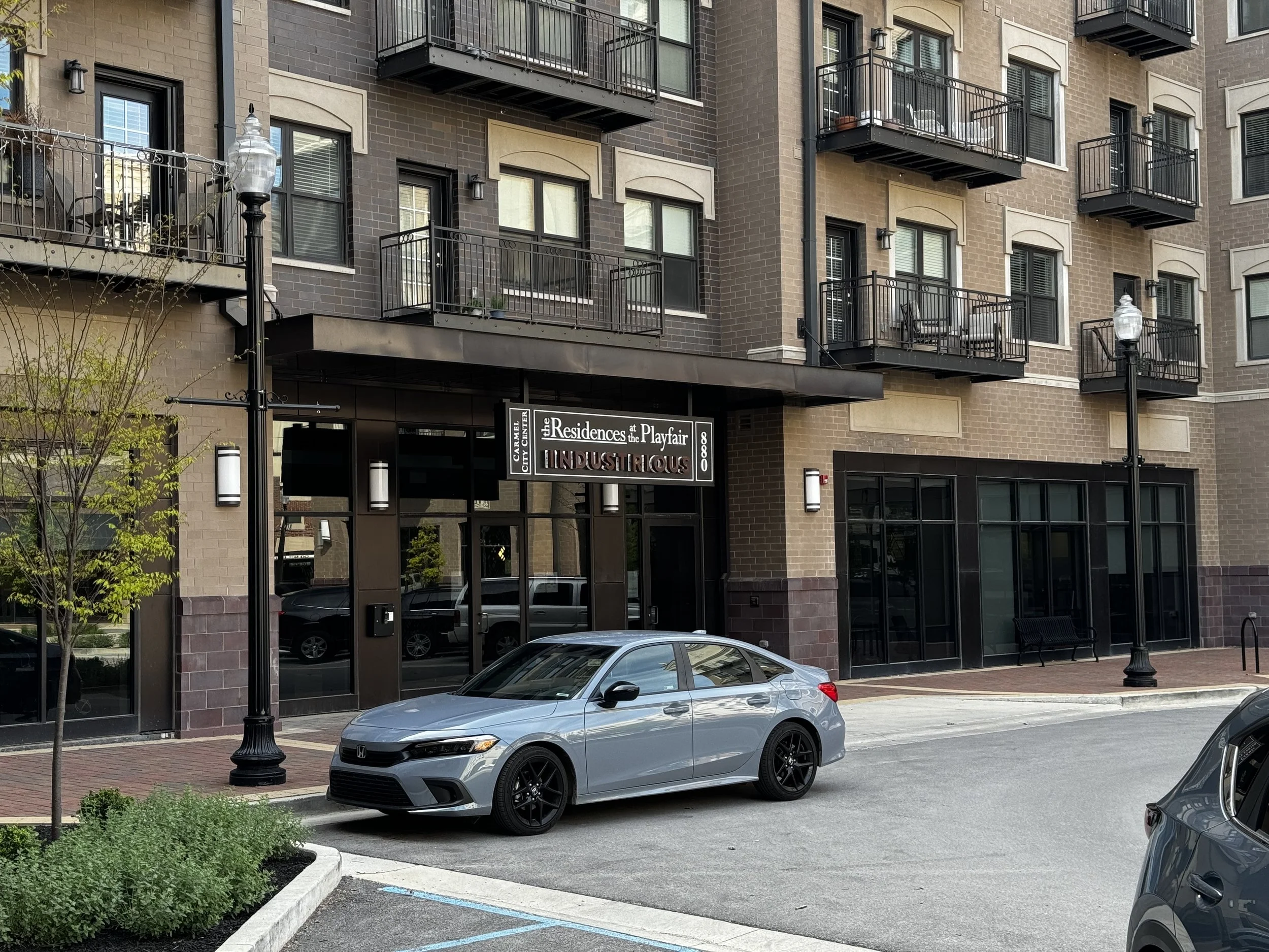 This is the entrance from the front driveway, which is situated on the east side of the building (the west side is the Monon Trail)